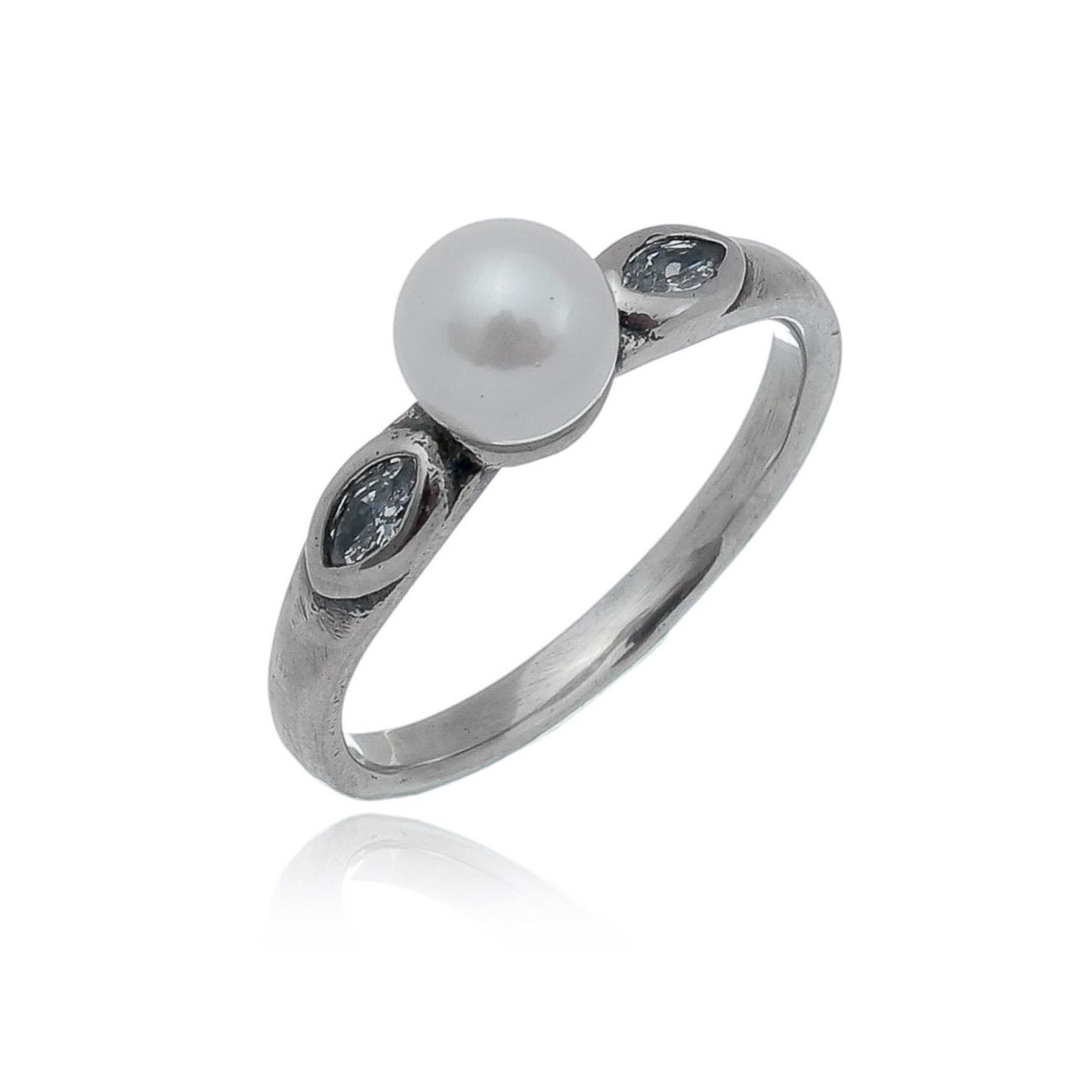 ANEL DE PRATA COM SOLITÁRIO PÉROLA E ZIRCÔNIAS