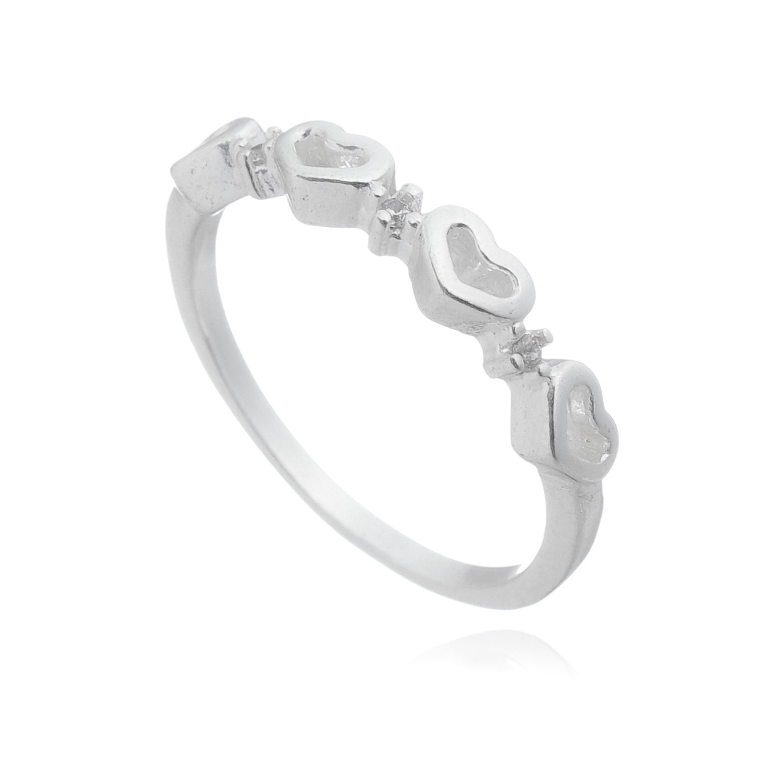 ANEL DE PRATA CORAÇÃO E ZIRCÔNIAS