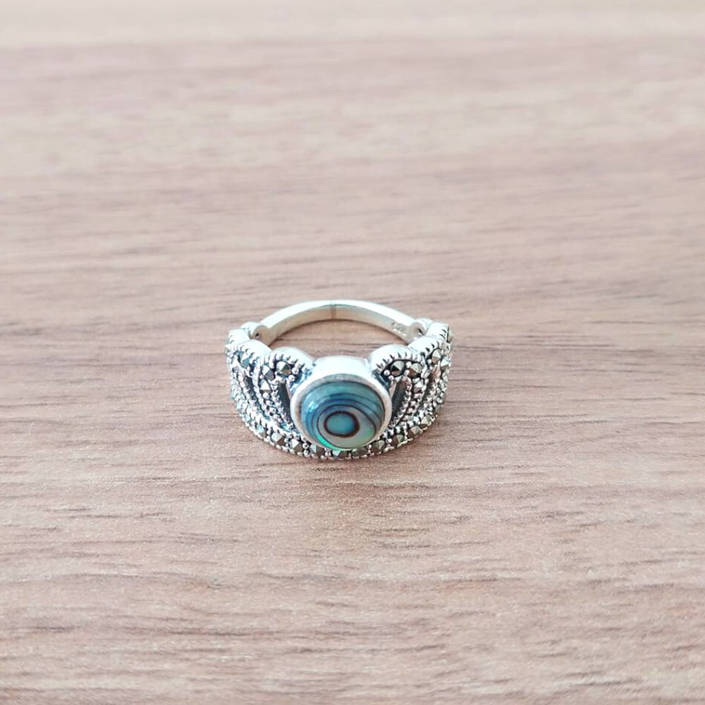 ANEL DE PRATA COROA COM ABALONE