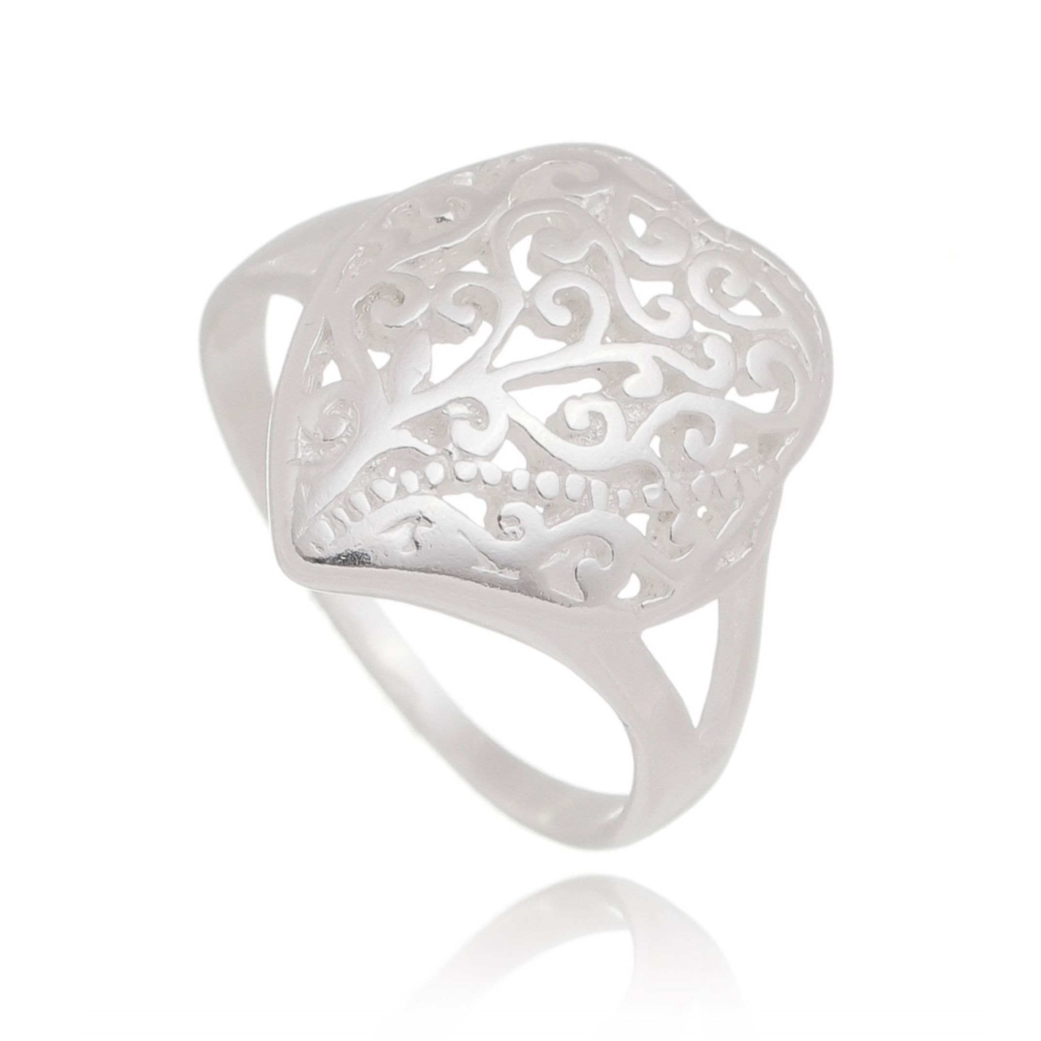 ANEL DE PRATA LISA CORAÇÃO VAZADO