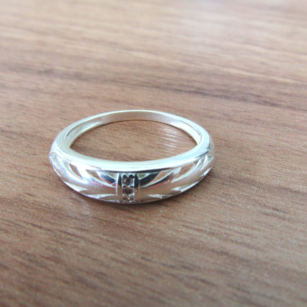 ANEL COM DETALHES VAZADOS E MICRO ZIRCÔNIAS BRANCAS