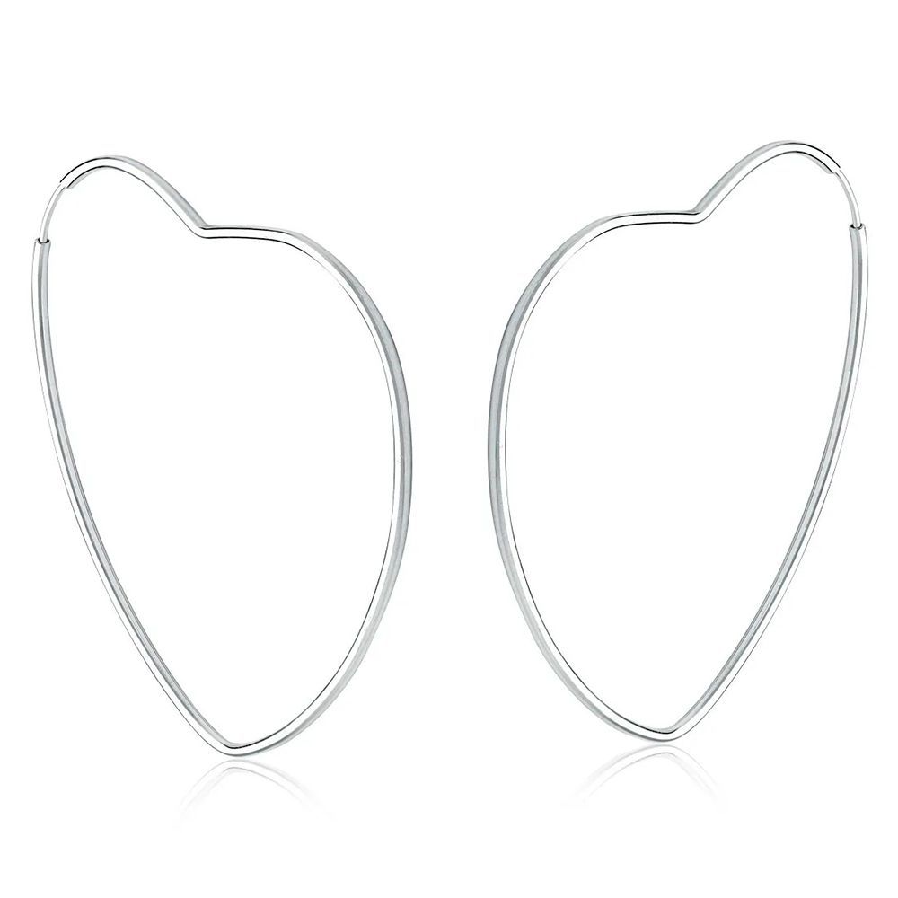 ARGOLA CORAÇÃO FIO MEIA CANA 5,0 CM EM PRATA