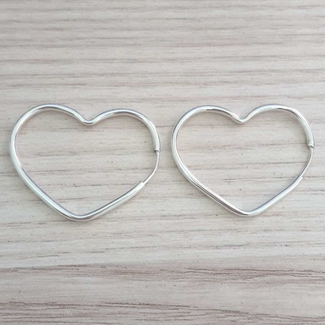 ARGOLA DE PRATA CORAÇÃO FIO REDONDO 3,2CM