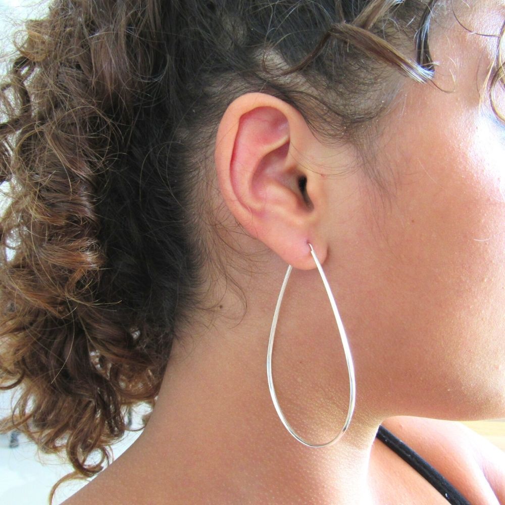 ARGOLA DE PRATA GOTA FIO MEIA CANA 7,0 CM