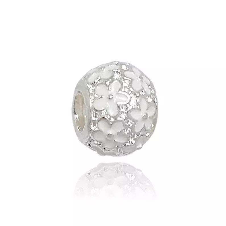 BERLOQUE DE PRATA BEADS FLOR BRANCO