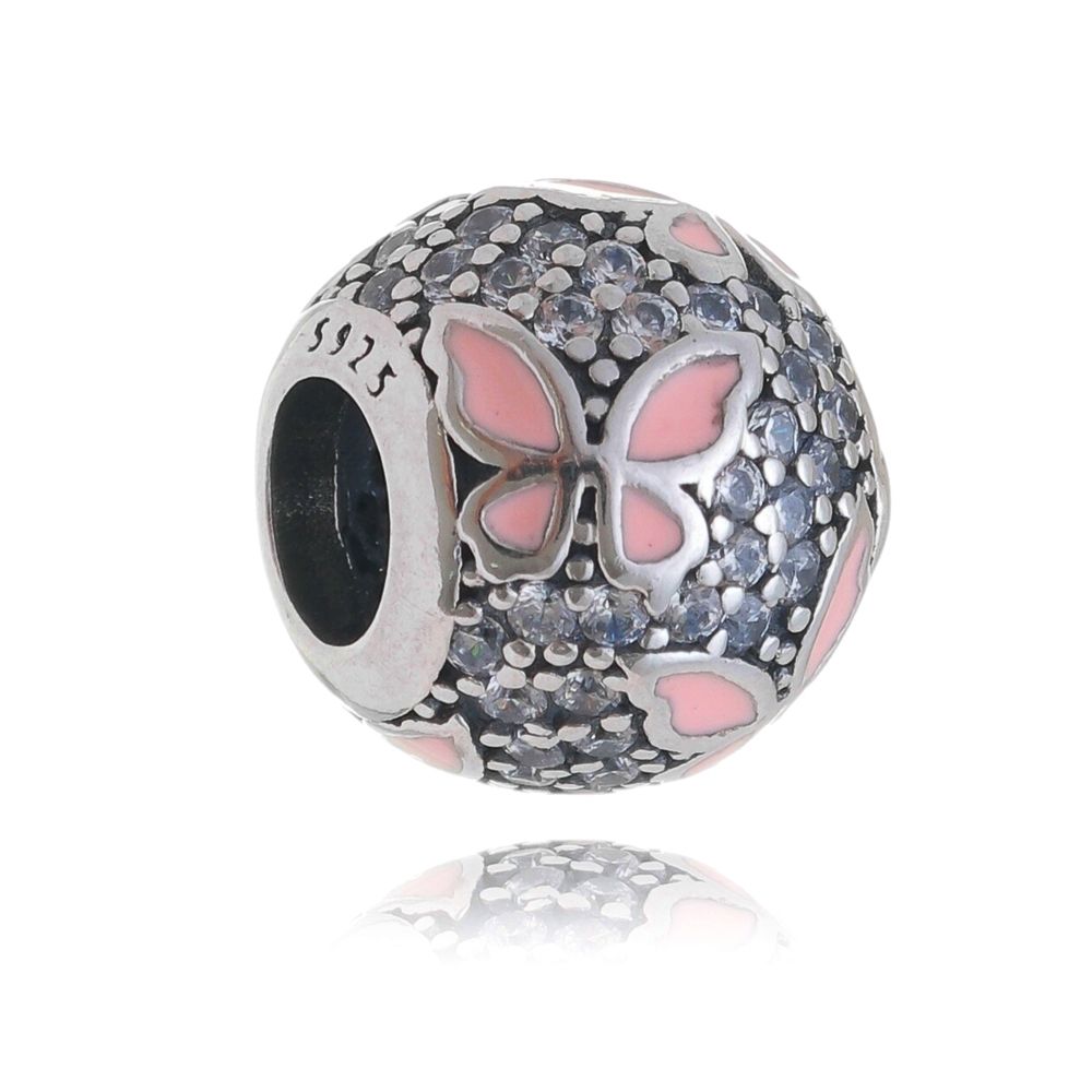 BERLOQUE DE PRATA BORBOLETAS ROSA E MICRO ZIRCONIAS