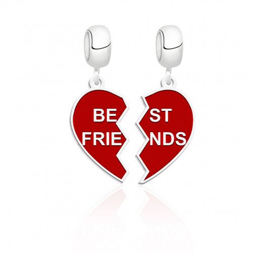 BERLOQUE DE PRATA CORAÇÃO BEST FRIENDS VERMELHO