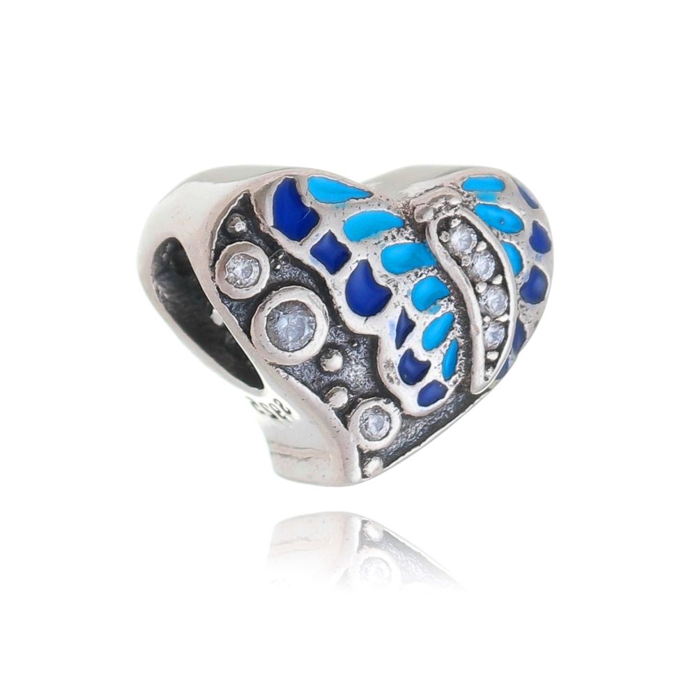 BERLOQUE DE PRATA CORAÇÃO ESMALTADO E MICRO ZIRCÔNIAS