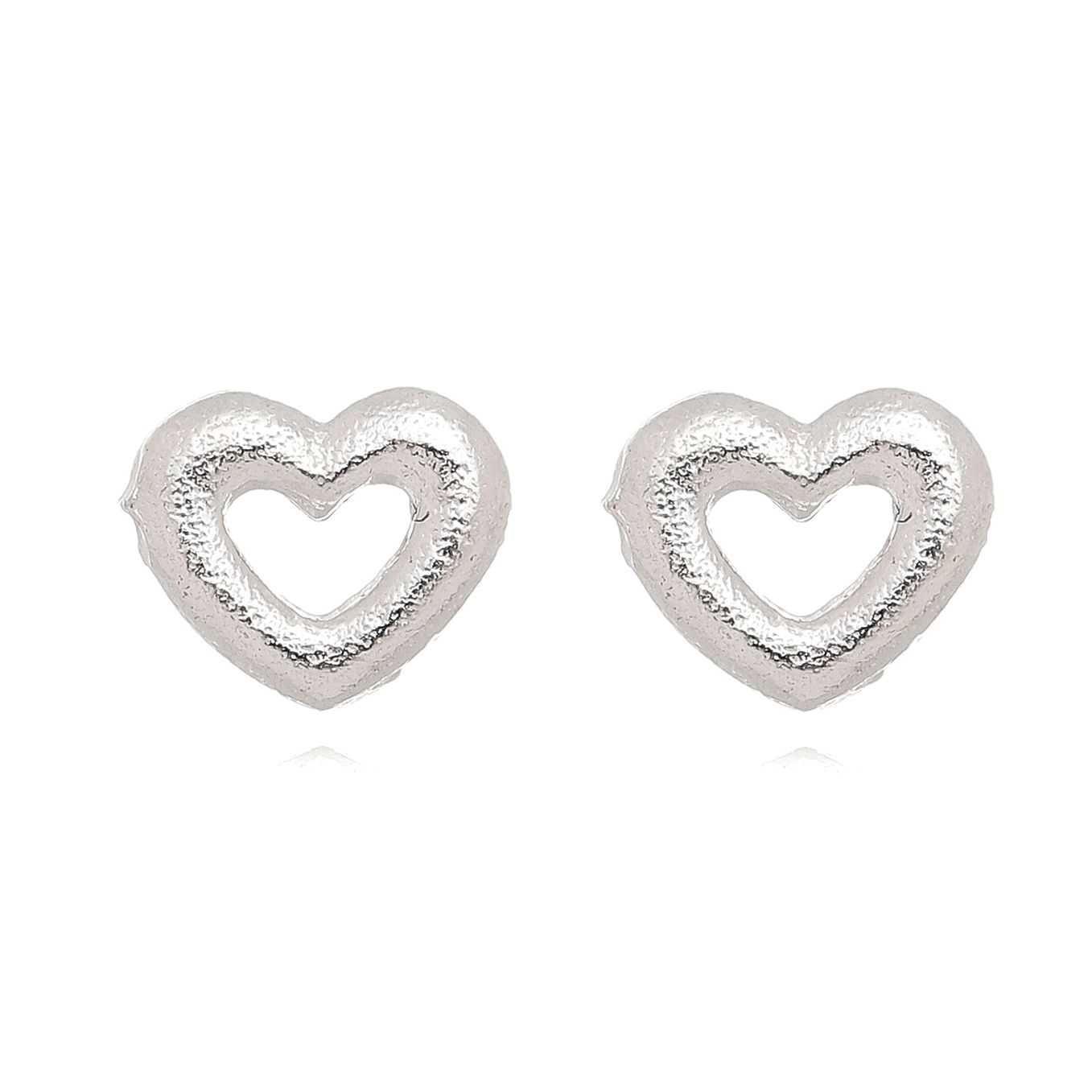 BRINCO 2 FURO CORAÇÃO JATEADO EM PRATA