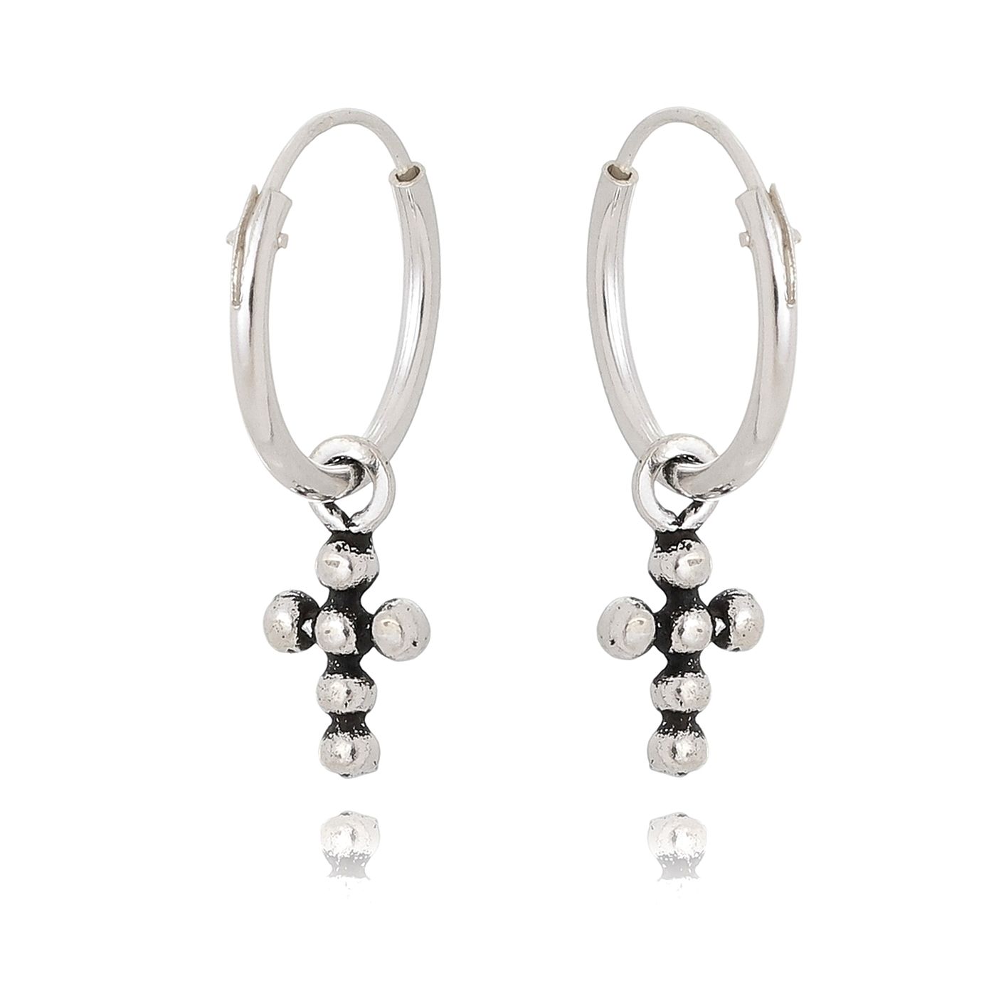 BRINCO ARGOLA COM CRUZ TRABALHADA EM PRATA