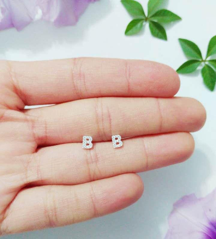 BRINCO DE PRATA LETRA B COM MICRO ZIRCÔNIA