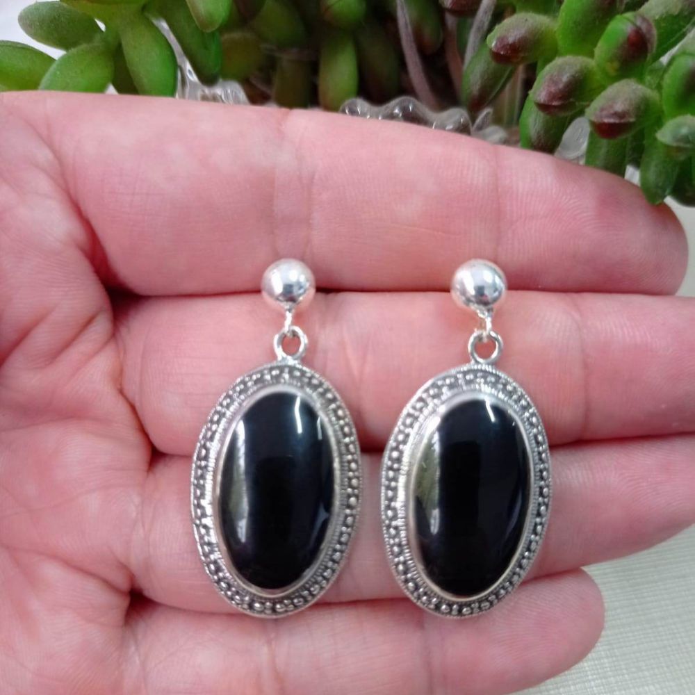 BRINCO DE PRATA LUXO OVAL ÔNIX
