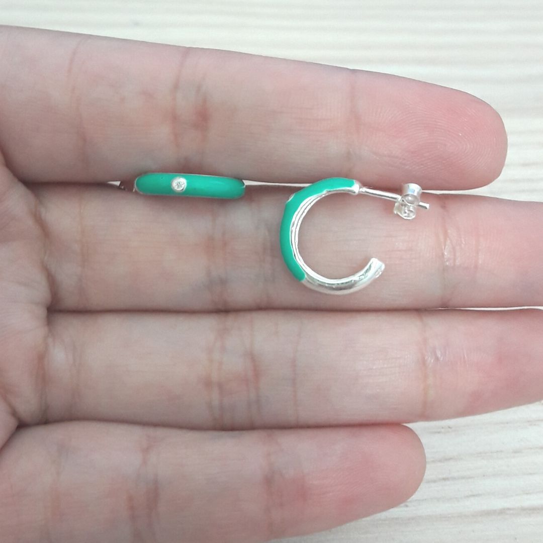 BRINCO DE PRATA MEIA ARGOLA RESINA VERDE COM MICRO ZIRCÔNIA