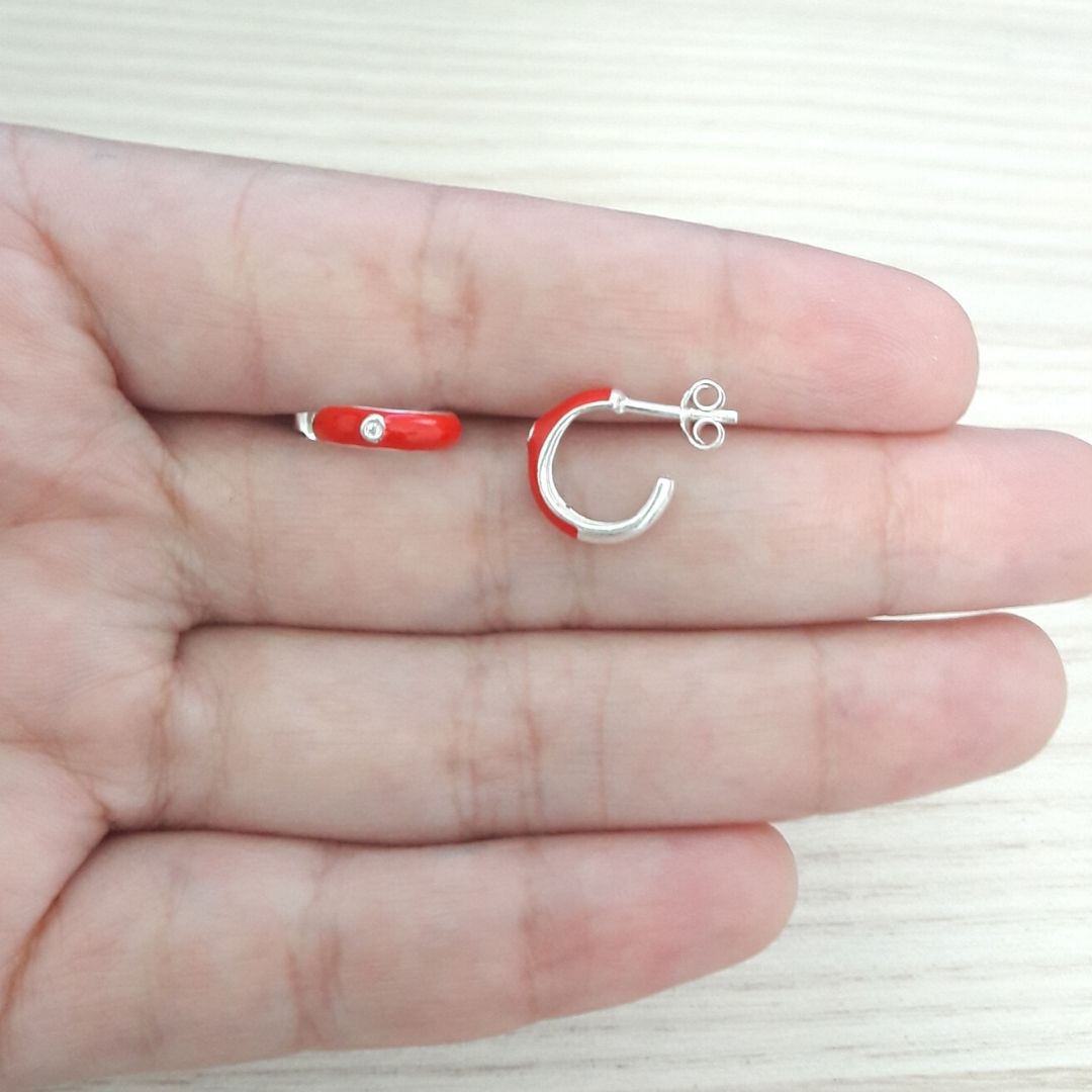 BRINCO DE PRATA MEIA ARGOLINHA RESINA VERMELHA COM MICRO ZIRCÔNIA