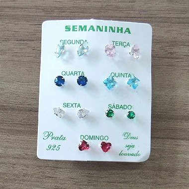 BRINCOS DE PRATA KIT SEMANINHA PEDRAS SORTIDAS