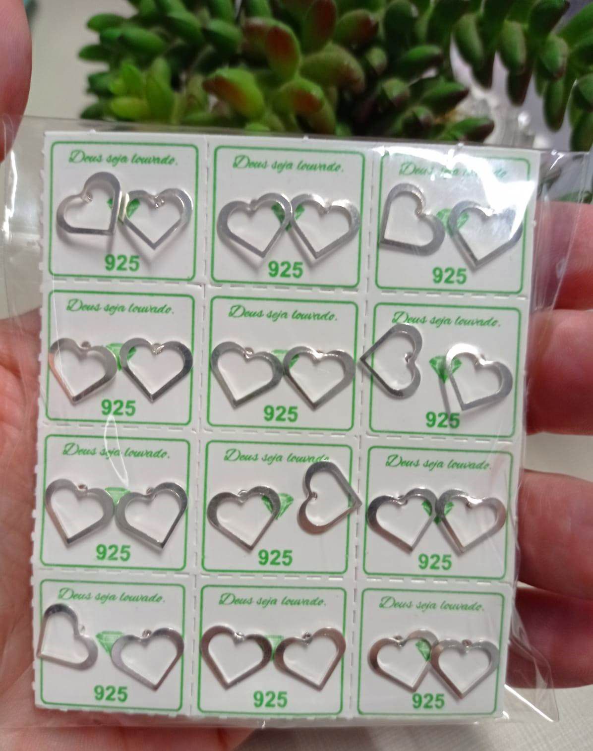 CARTELA DE BRINCOS CORAÇÃO EM PRATA COM 12 PARES