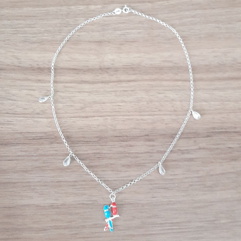 CHOKER DE PRATA GOTA PONTO DE LUZ CASAL DE PASSAROS