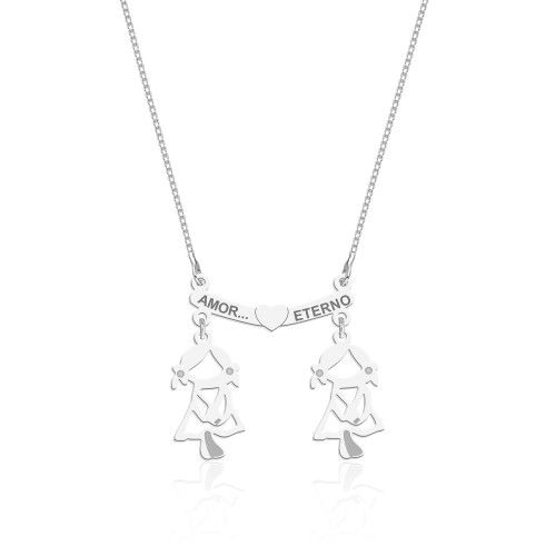 COLAR DE PRATA 2 FILHAS - AMOR ETERNO