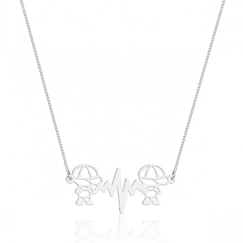 COLAR DE PRATA BATIMENTO CARDÍACO 2 MENINOS