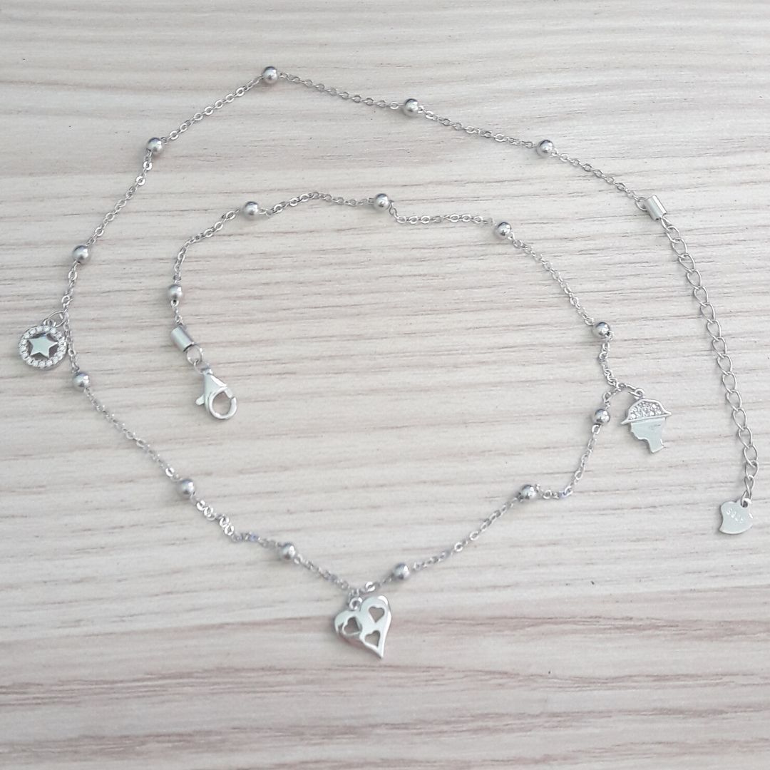 COLAR DE PRATA BOLINHAS CORAÇÃO E ESTRELA