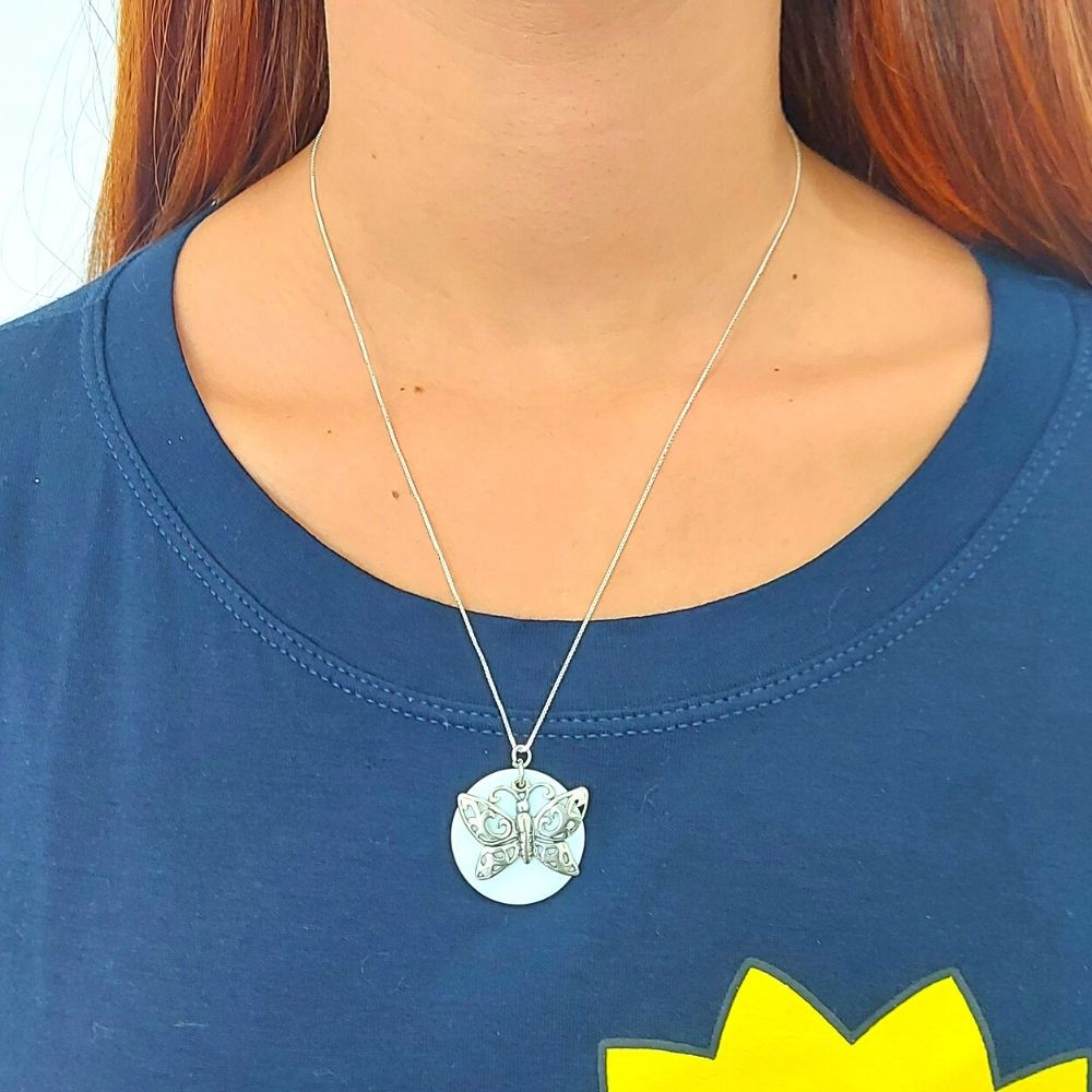 COLAR DE PRATA BORBOLETA COM MADREPEROLA