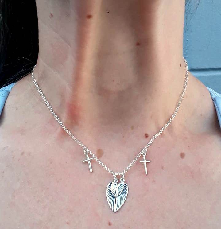 COLAR DE PRATA CHOKER ELE ME PROTEJE EMBAIXO DE SUAS ASAS