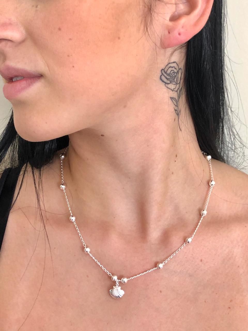 COLAR DE PRATA CONCHA E BOLINHAS