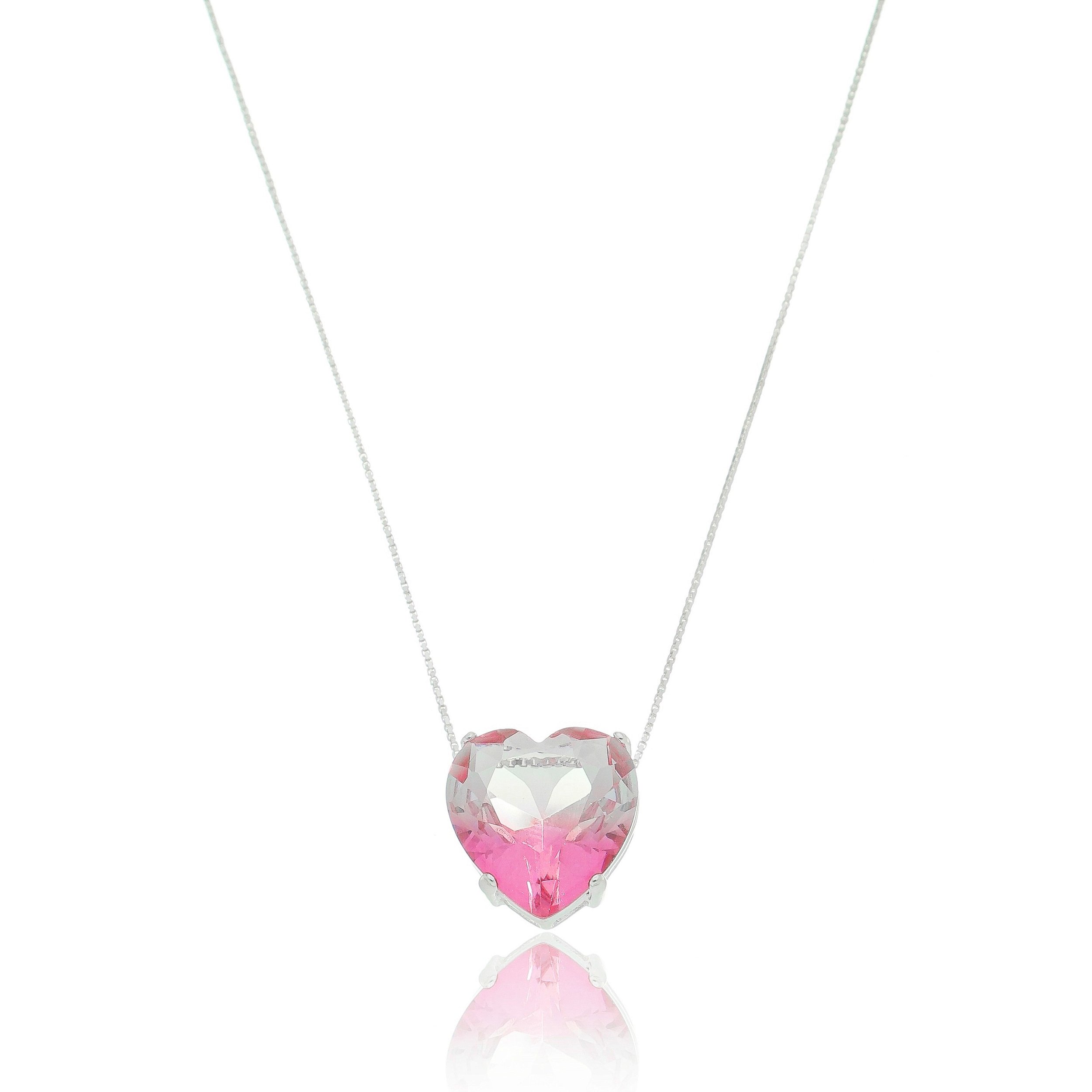 COLAR DE PRATA CORAÇÃO BICOLOR CRISTAL E ROSA