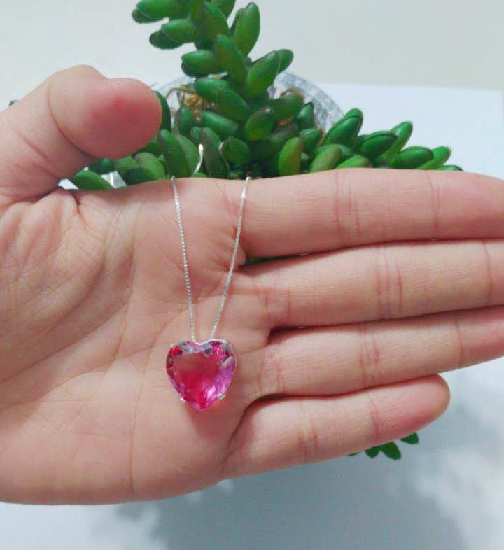 COLAR DE PRATA CORAÇÃO BICOLOR ROSA