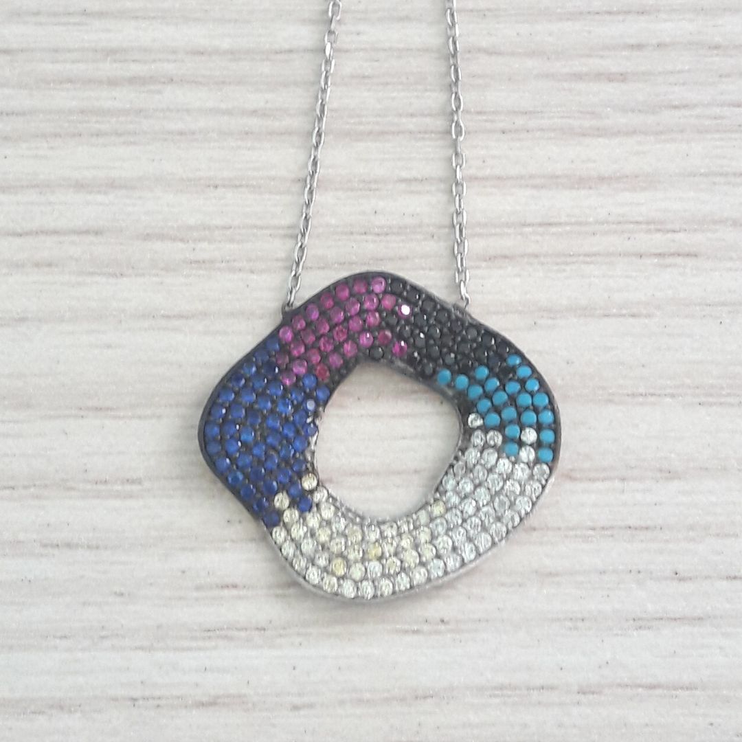 PINGENTE COM 2,5CM DE COMPRIMENTO X 2,3CM DE ALTURA, MICRO ZIRCÔNIAS TURQUESA, MARINHO, PRETA, AMARELA,BRANCA E PINK