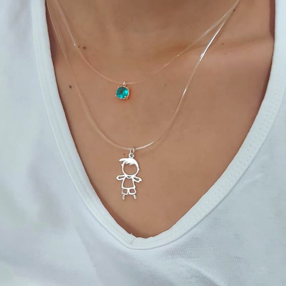 COLAR DE PRATA DUPLO MENINO COM PONTO DE LUZ