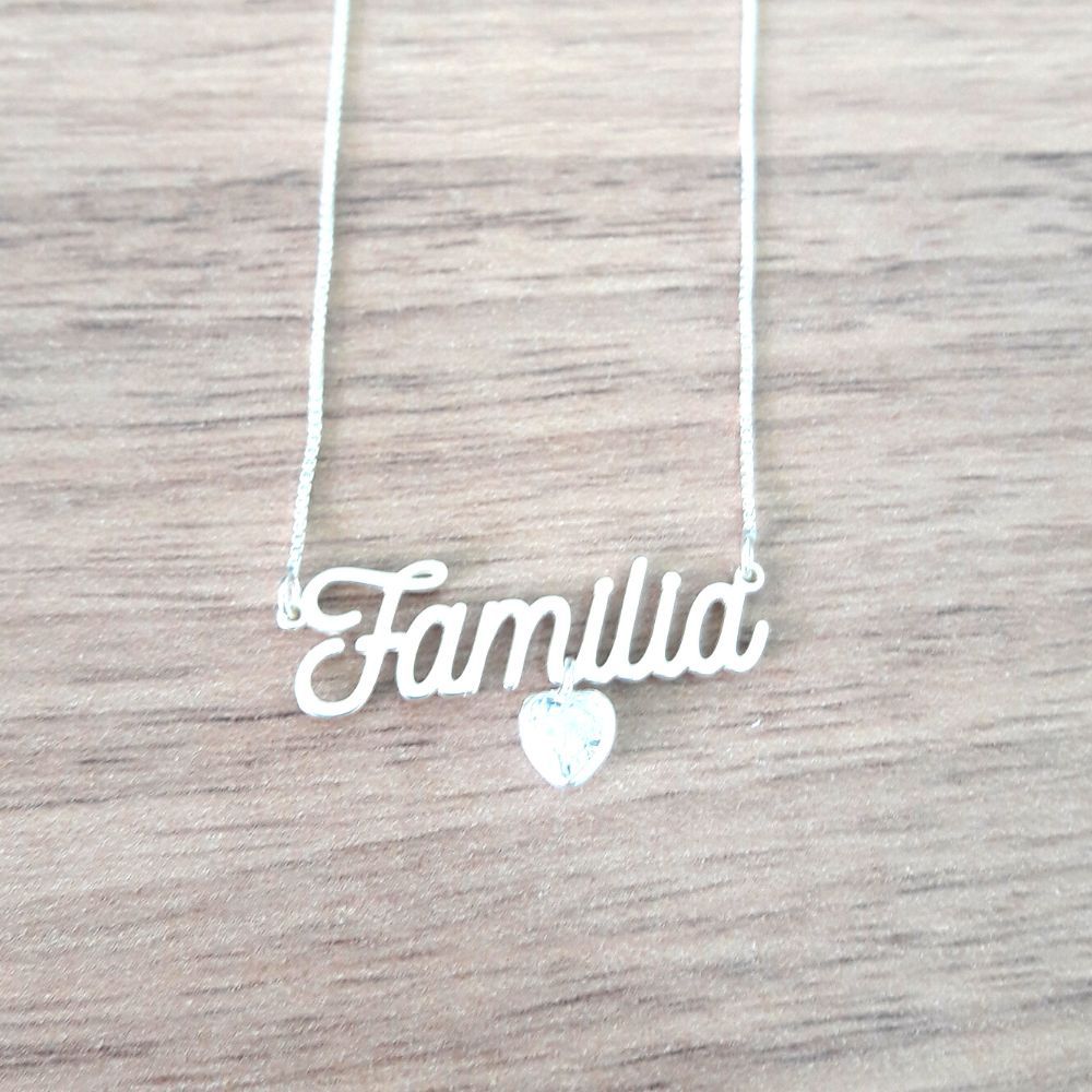 COLAR DE PRATA FAMILIA COM CORAÇÃO DE CRISTAL