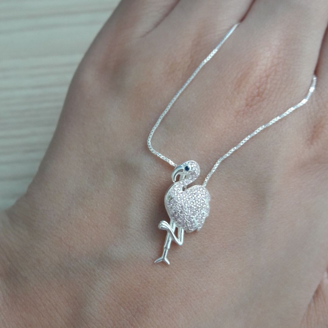 COLAR DE PRATA FLAMINGO COM MICRO ZIRCÔNIAS ROSAS