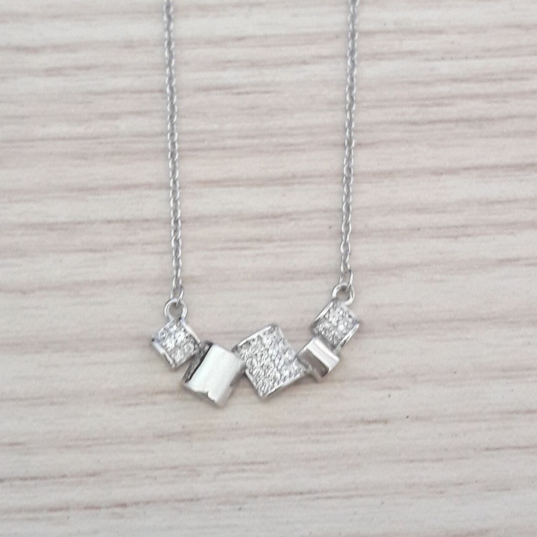 COLAR DE PRATA GEOMETRIA COM MICRO ZIRCÔNIAS
