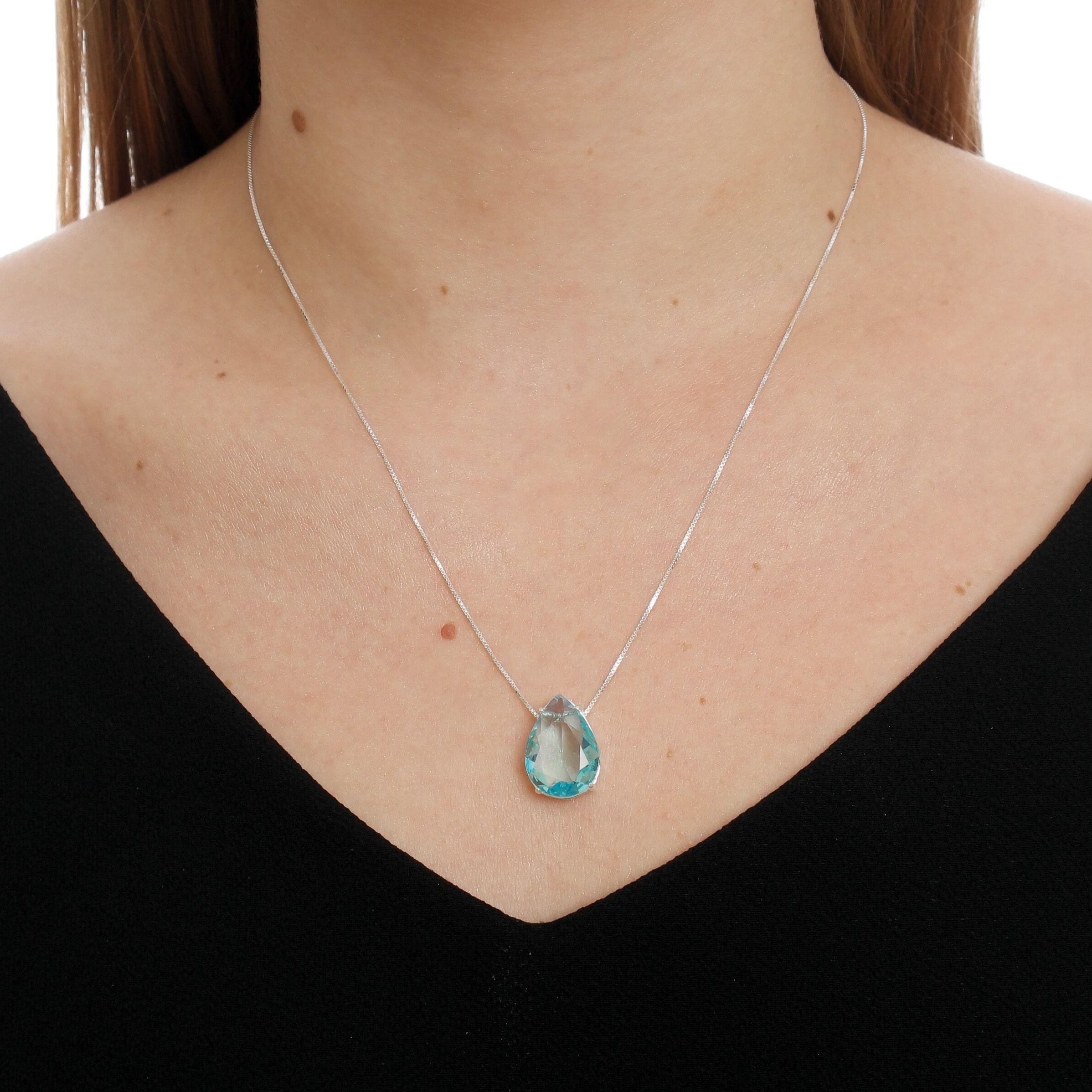 COLAR DE PRATA GOTA AZUL ÁGUA
