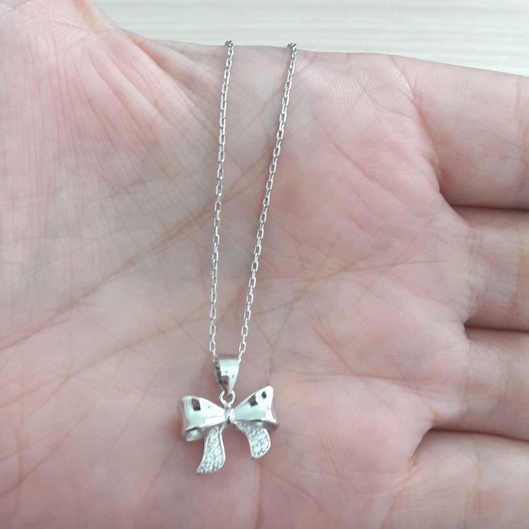COLAR DE PRATA LAÇO COM MICRO ZIRCÔNIAS