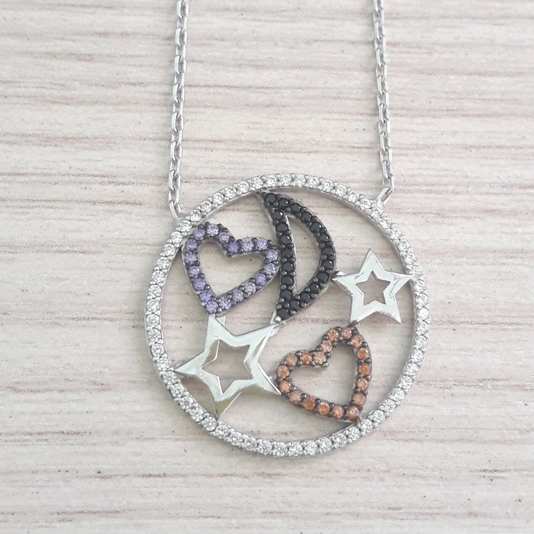 COLAR DE PRATA NOITE ROMÂNTICA COM MICRO ZIRCÔNIAS