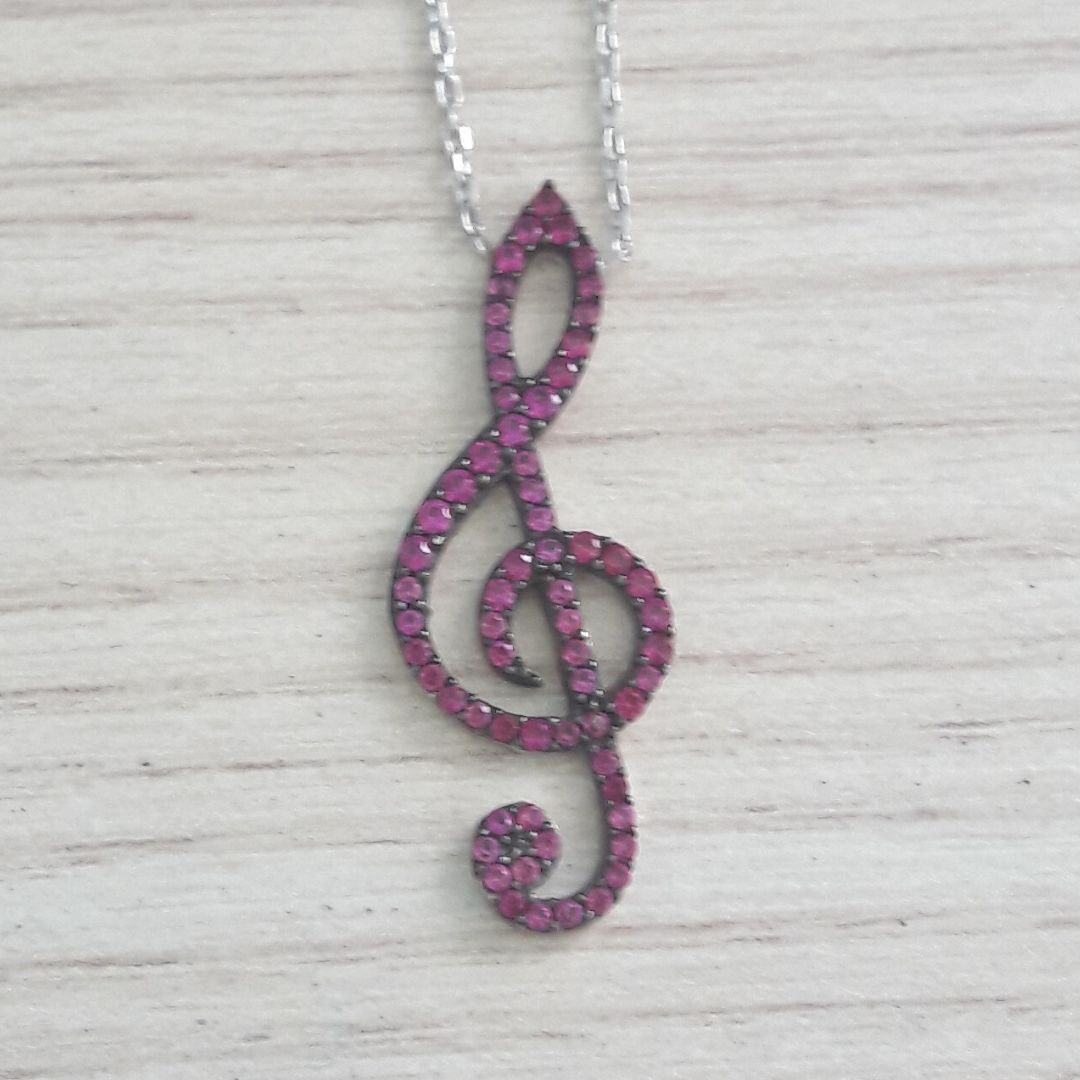 PINGENTE CLAVE DE SOL COM 3,1CM DE ALTURA X 1,1CM DE LARGURA, MICRO ZIRCÔNIAS PINK
