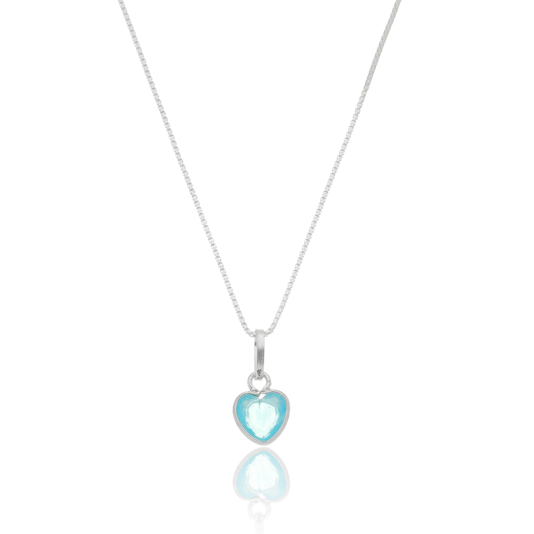 COLAR DE PRATA PONTO DE LUZ CORAÇÃO AZUL LEITOSO