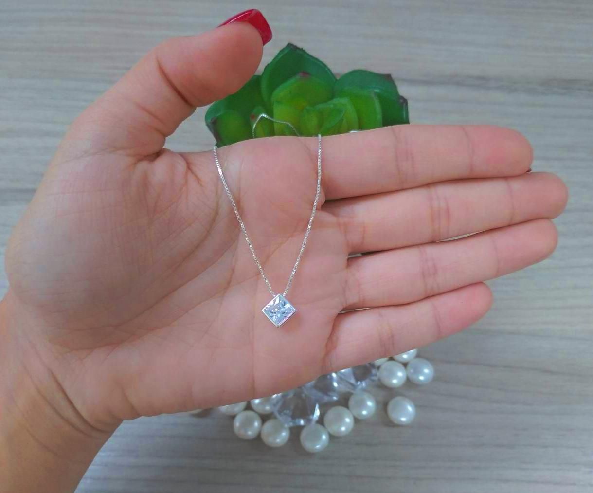 COLAR DE PRATA PONTO DE LUZ QUADRADO