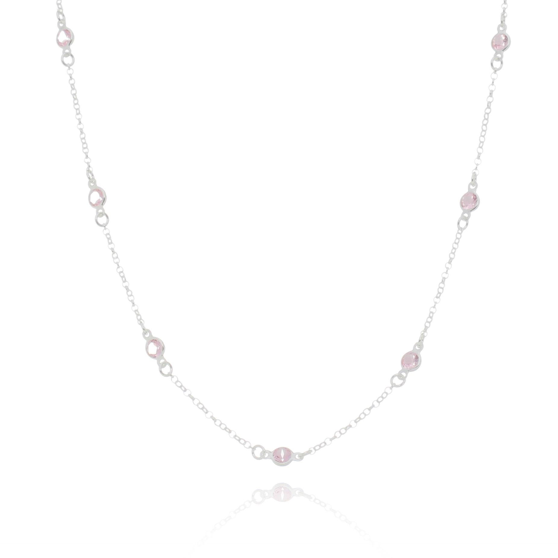 COLAR DE PRATA RIVIERA ROSA 70 CM