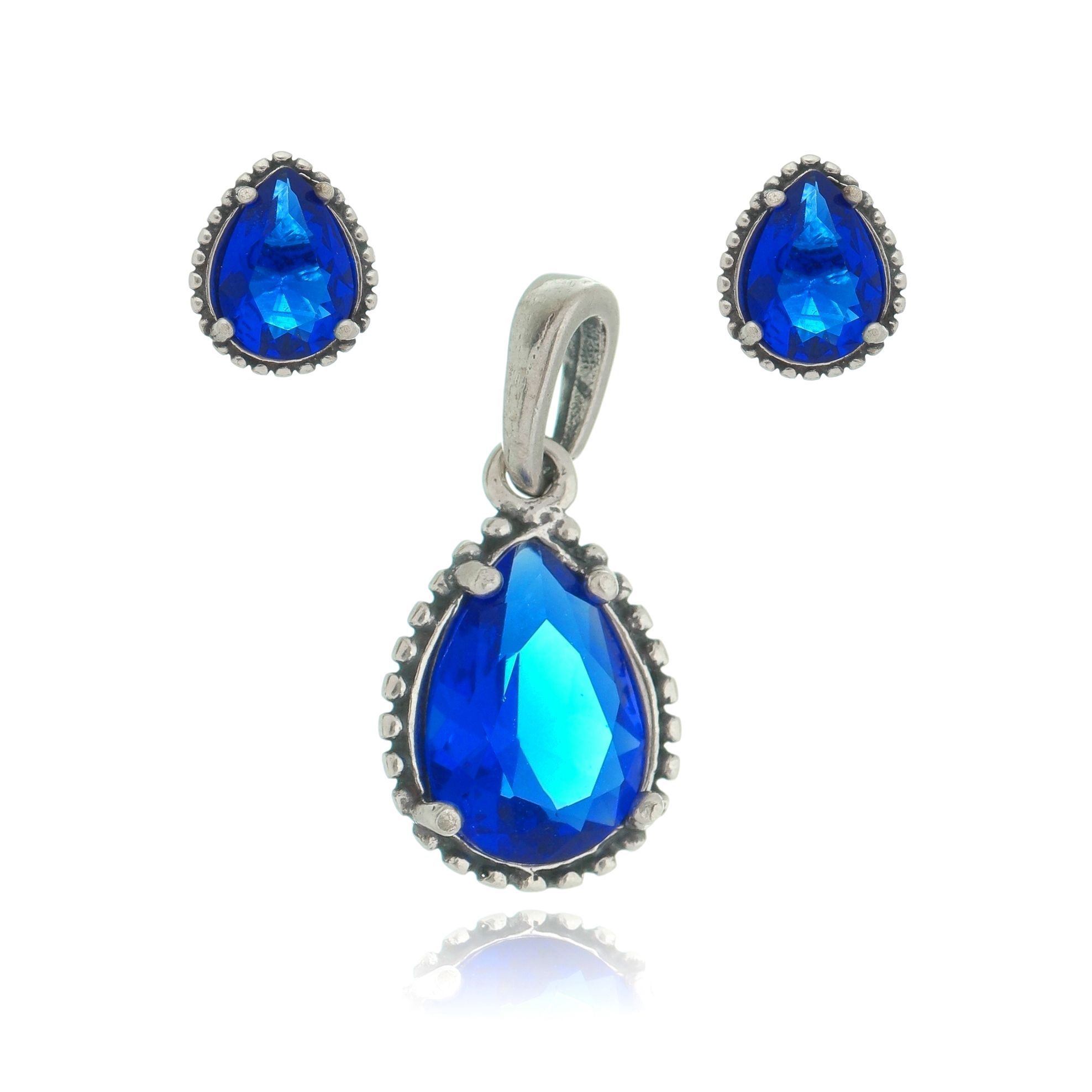 CONJUNTO DE PRATA DE BALI GOTA AZUL