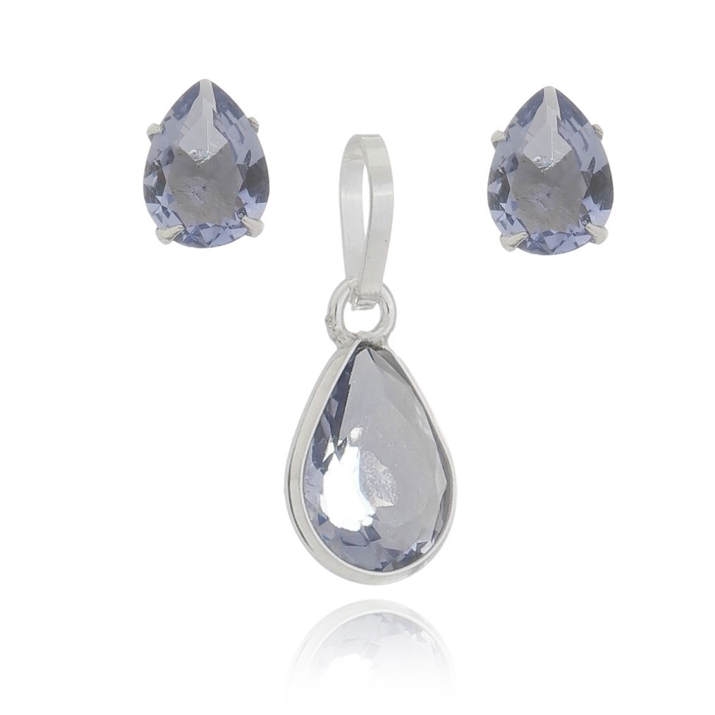 CONJUNTO DE PRATA PINGO DE LUZ 8X6 MM FUMÊ