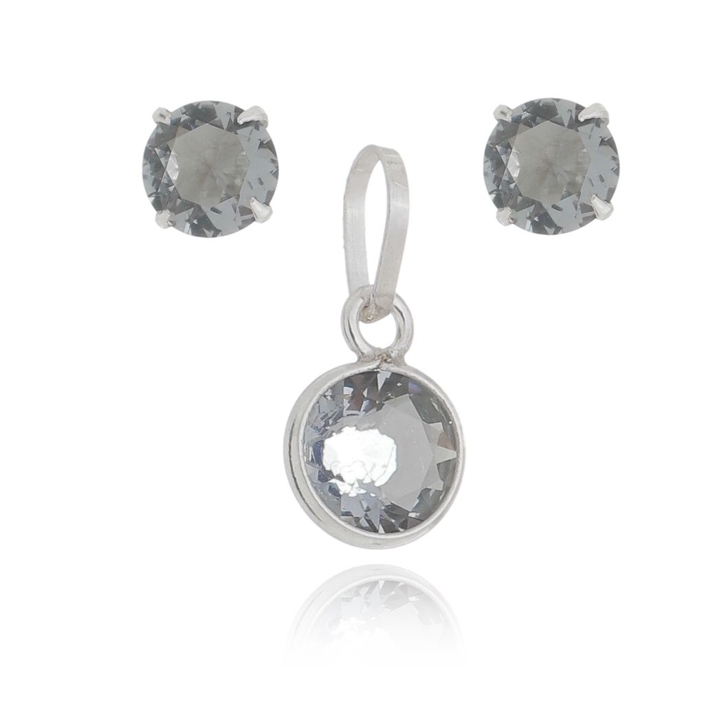 CONJUNTO DE PRATA PONTO DE LUZ 6MM FUMÊ