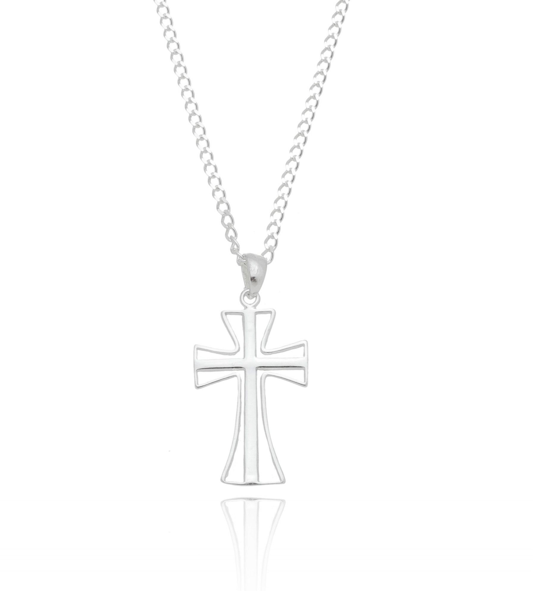 CORRENTE DE PRATA MASCULINA COM PINGENTE CRUZ VAZADA