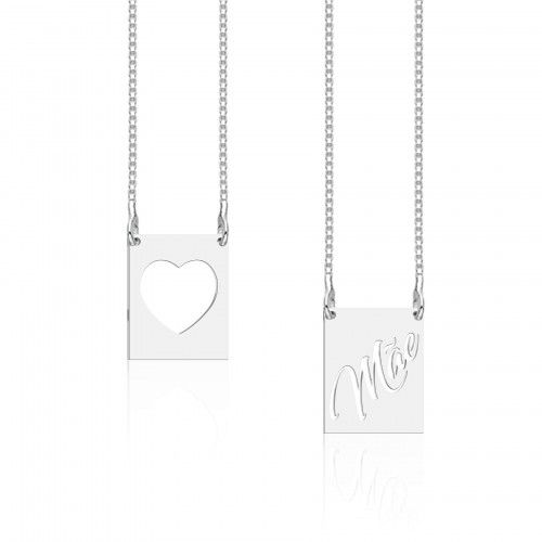 ESCAPULÁRIO DE PRATA RETANGULAR CORAÇÃO E MÃE VAZADO