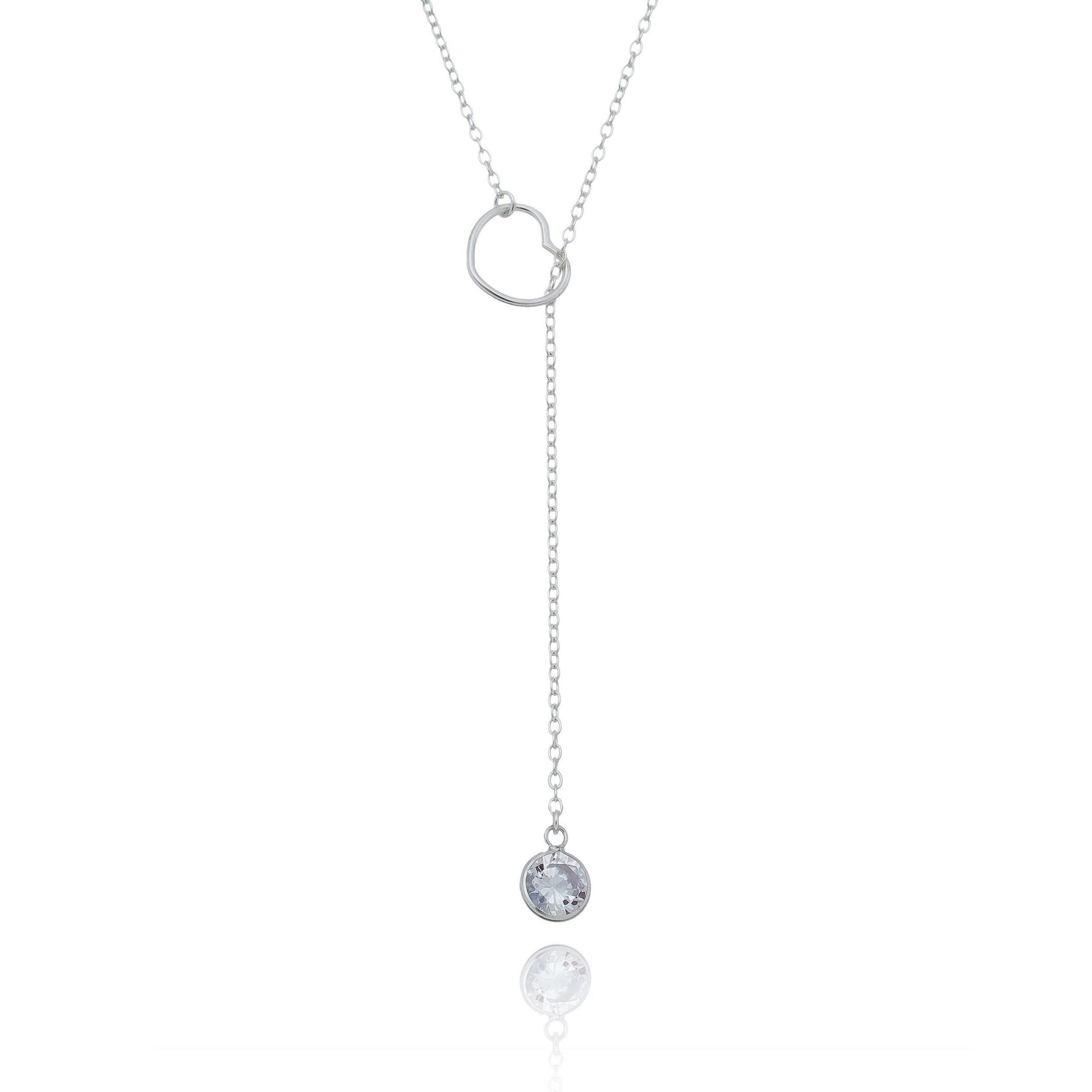 GRAVATINHA COLAR DE PRATA CORAÇÃO COM ZIRCÔNIA