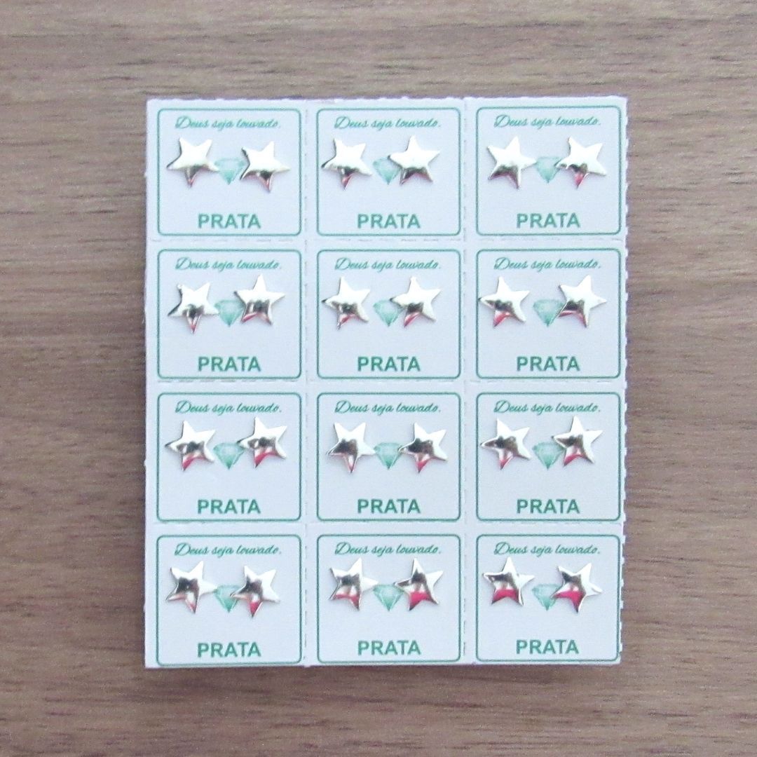 KIT 12 BRINCOS DE PRATA ESTRELA