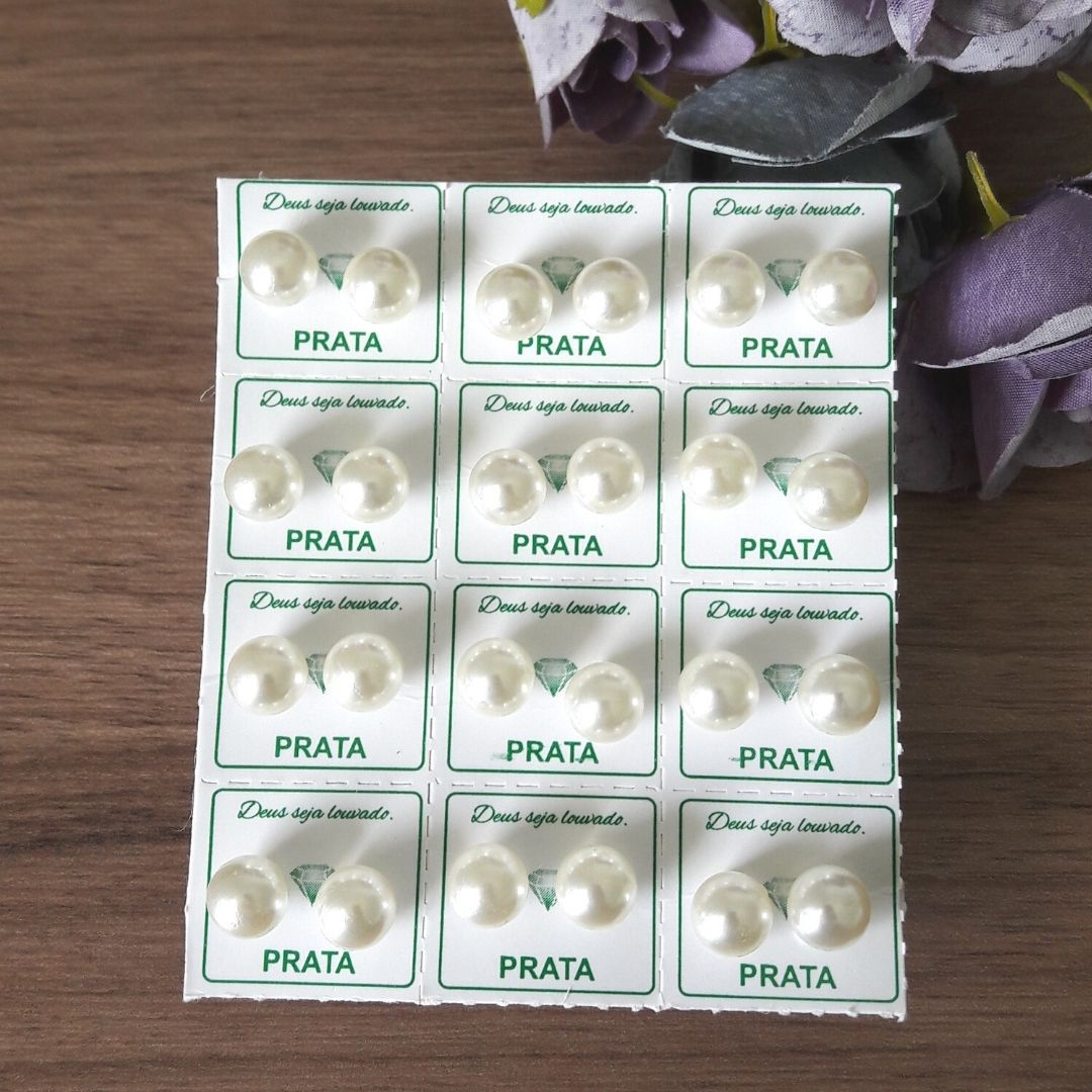 KIT 12 BRINCOS DE PRATA PÉROLA 8MM