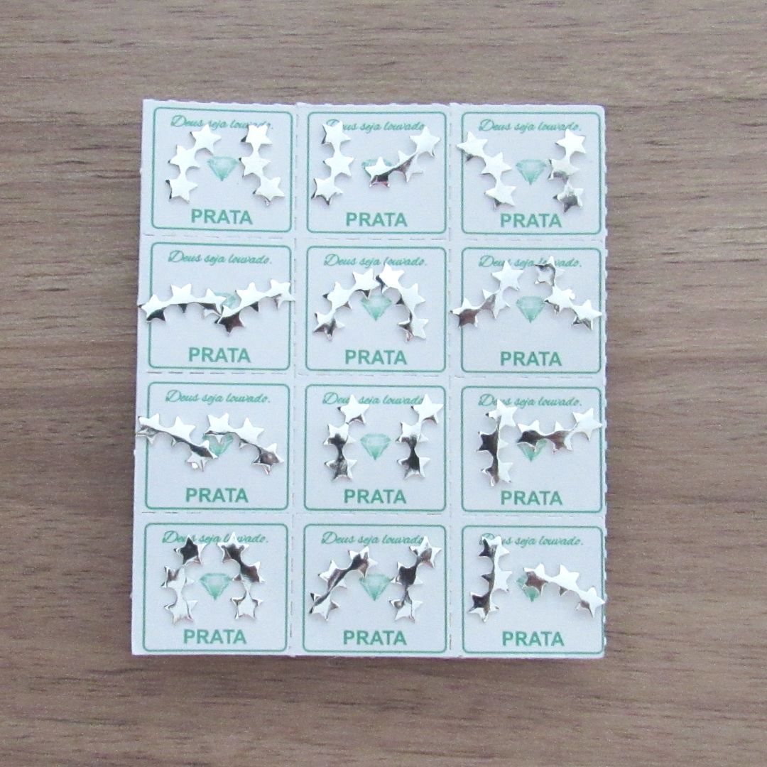 KIT 12 BRINCOS DE PRATA TRÊS ESTRELAS